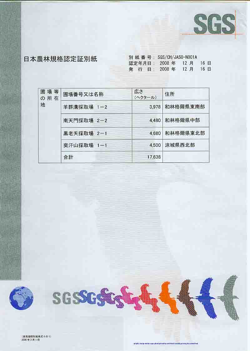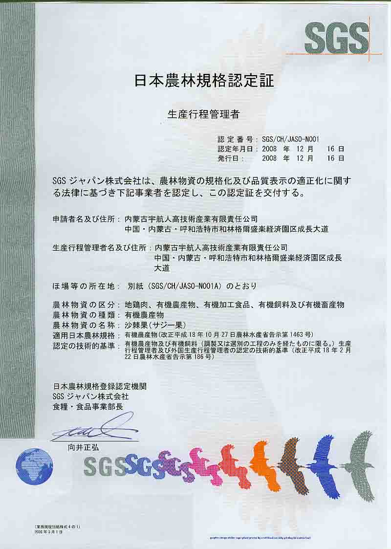 當今世界食品安全最高、最嚴格的標準之一。日本對農產品的要求非常嚴格。JAS標準要求的控制環節均高於其他質量標準。對原料基地有嚴格的要求: