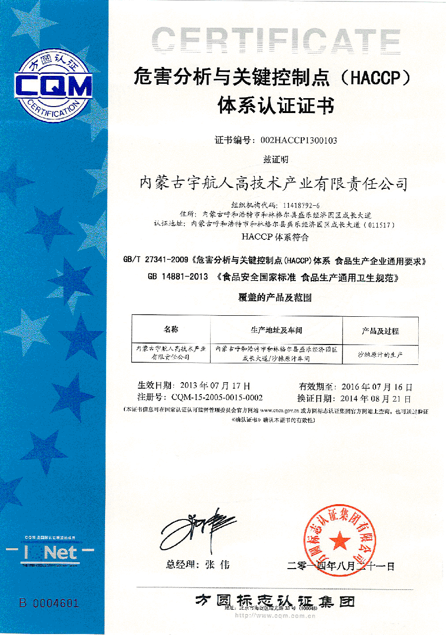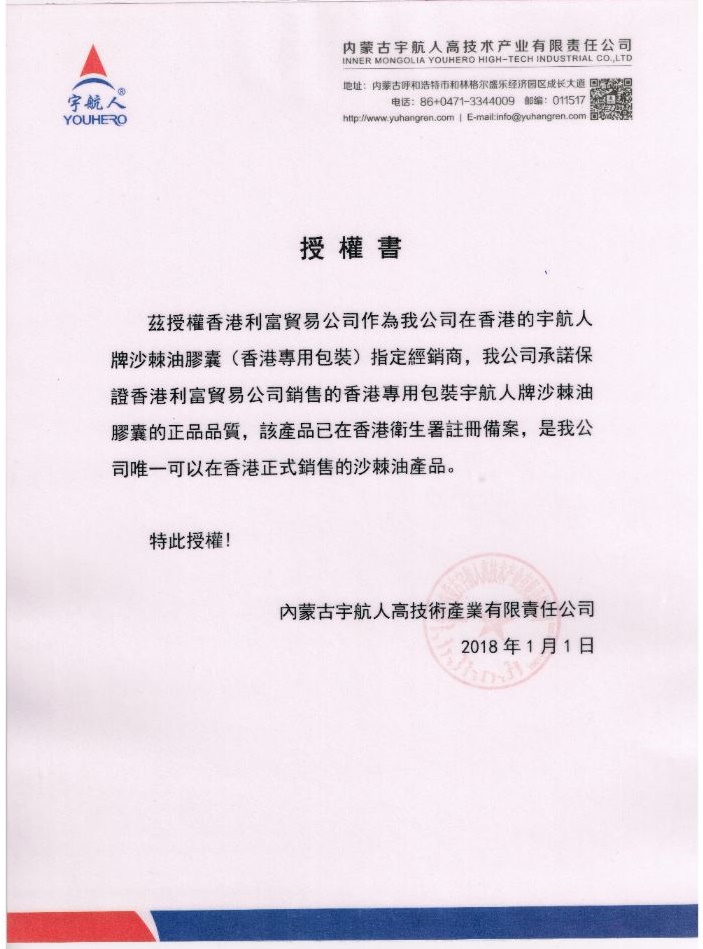 宇航人牌沙棘油 是唯一一個獲得中國保健食品、中國有機食品、歐盟有機食品、日本有機食品、美國有機食品認證的“五方”認證的產品,產品品質達到了頂級水準。