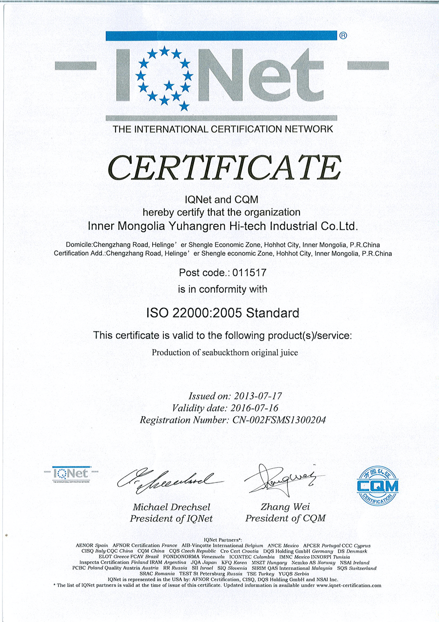 2004年組建沙棘工程技術研究中心——爲國內最大和內蒙古自治區唯一一家從事沙棘專業技術研究的科研機構。彙集了各個專業的優秀研發人才,其中包括多位國外高級專家。