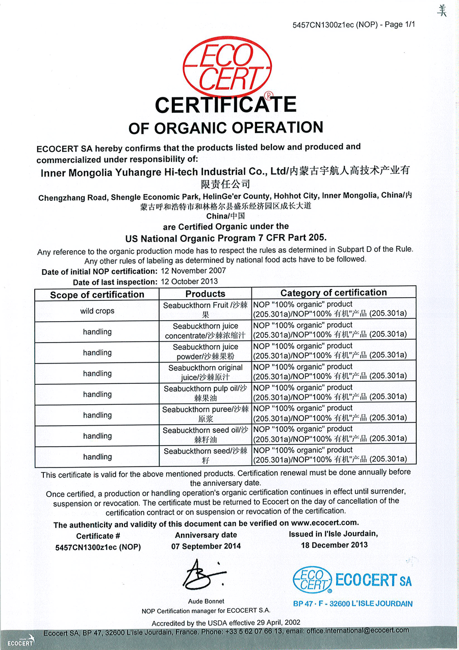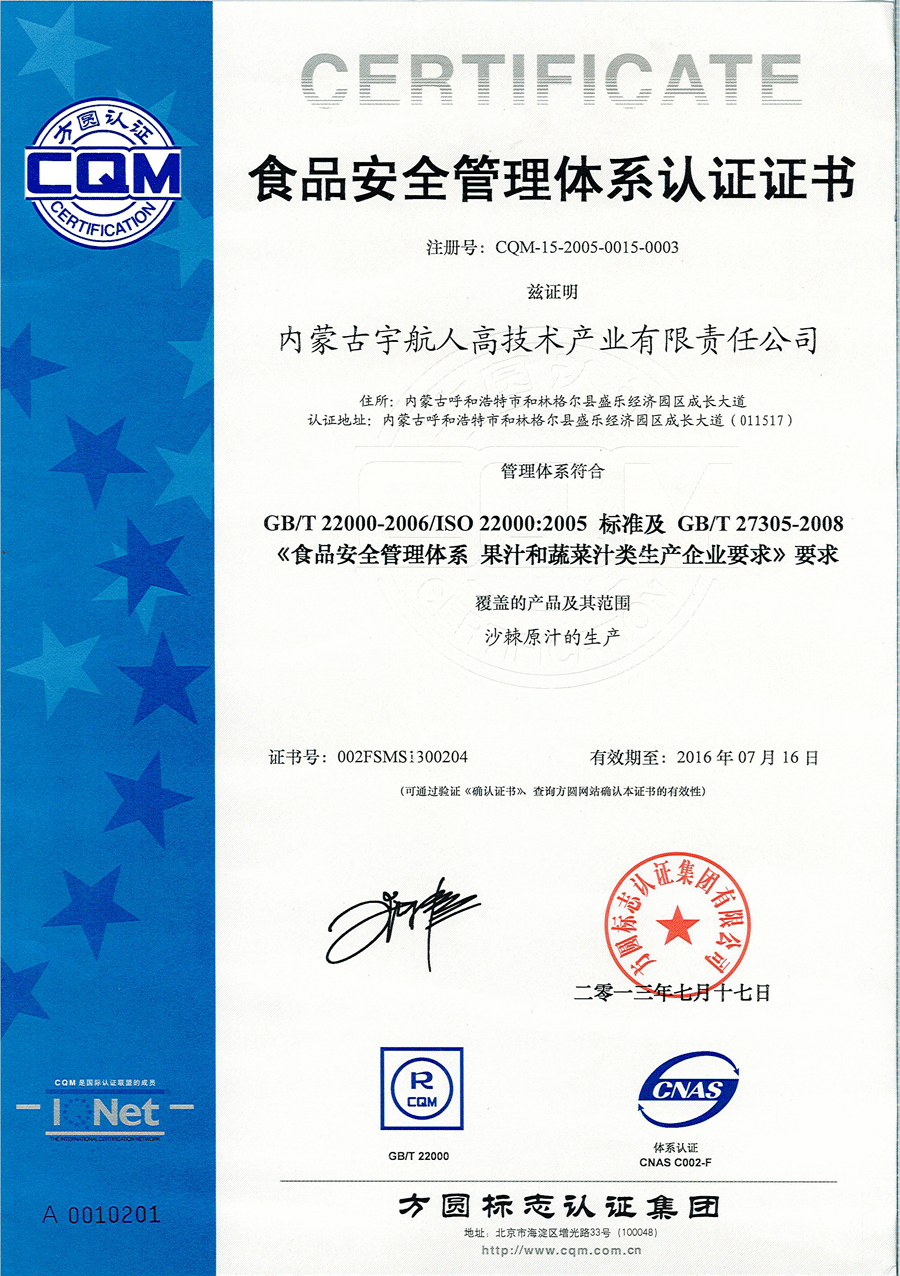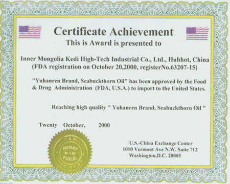 宇航人牌沙棘油 是唯一一個獲得中國保健食品、中國有機食品、歐盟有機食品、日本有機食品、美國有機食品認證的“五方”認證的產品,產品品質達到了頂級水準。