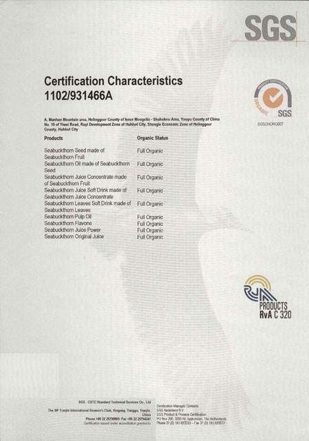一,蠻漢山萬畝良種蒙古沙棘基地:平均海拔1800米以上,空氣清新,氣候宜人,完全符合GAP要求。蠻漢山生産基地成爲宇航人生産沙棘産品的最佳原料來源,並通過中國農業部及國際相關組織的有機認證。